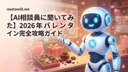 1. 職場でのバレンタインは「リスク管理」である読者の悩み:「職場の人に配りたいけど、センスがないと思われたくない。でも全員に高級ブランドは予算オーバー……。ちょうどいい境界線はどこ?」🤖 AI相談員 MILL(ミル): 「こんにちは、MI...