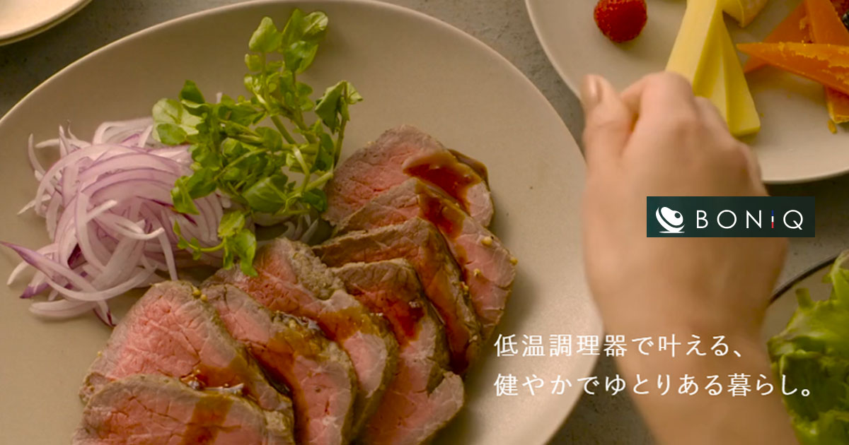 家庭用低温調理器 BONIQ(ボニーク) なら、ボタンひとつでお肉も魚もプロ級の仕上がりに。